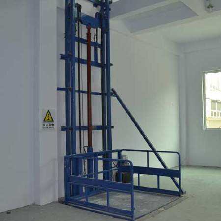 导轨式载货升降货梯由台面、导轨柱、电机、泵站几个部件组成。其结构简单,安装方便,对安装环...